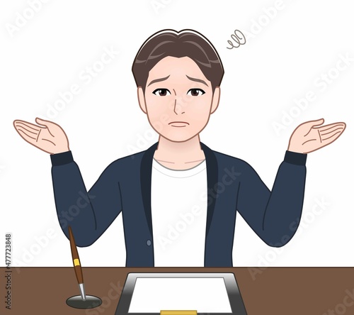 カーディガンを着た大学生男性