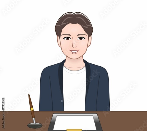カーディガンを着た大学生男性