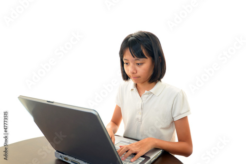 パソコンを楽しむ笑顔の女の子