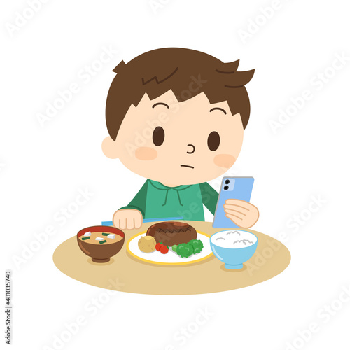 食事中にスマホを見る男の子
