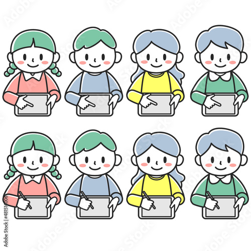 タブレットを使って学習する子どもたち