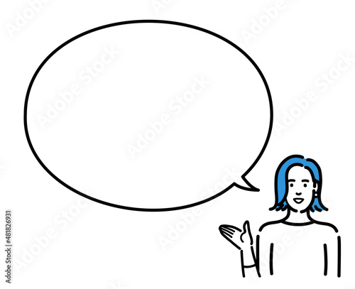 吹き出しで説明する若い女性