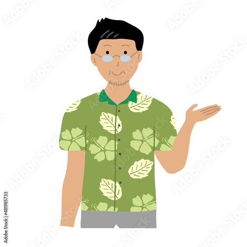 沖縄のかりゆしウェアを着た男性 単身 イラスト素材