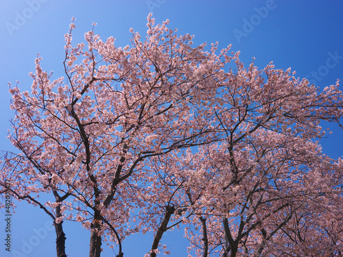 日本の春、青空に映える桜
