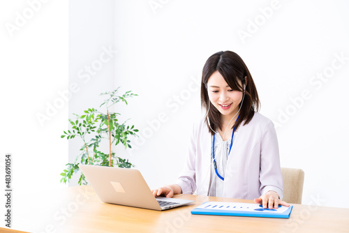 テレワークでリモート会議に参加する若いビジネスウーマン
