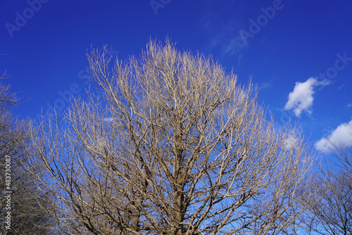 冬の青空と樹木の風景