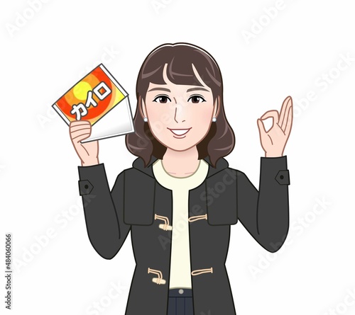 使い捨てカイロをもつ女性