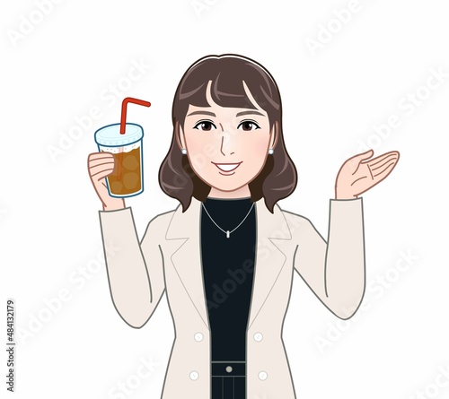 コーヒーを持って歩く女性