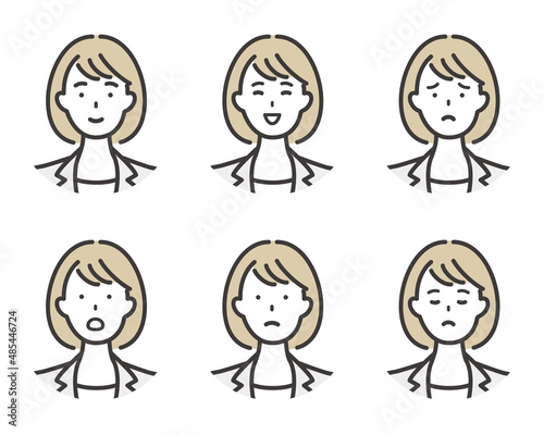 ビジネスウーマンの表情セット
