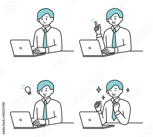 男性社員がパソコンを操作するイラスト素材