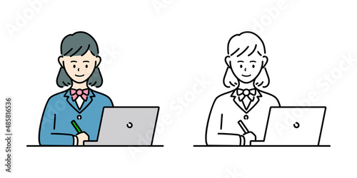 オンライン授業で勉強する女子高生のベクターイラスト素材