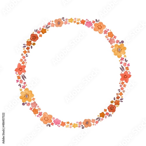 オレンジ系 水彩のお花のリース・フレームセット ラスター素材