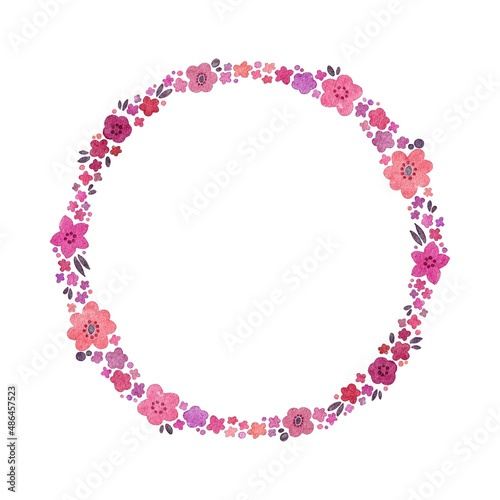 ピンク系 水彩のお花のリース・フレームセット ラスター素材