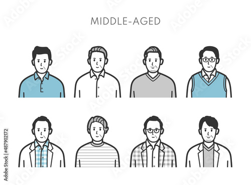 中年男性の上半身アイコンイラストセット