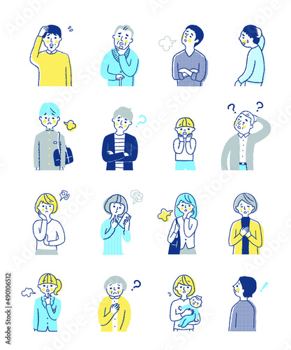 困った表情の男女 上半身 セット