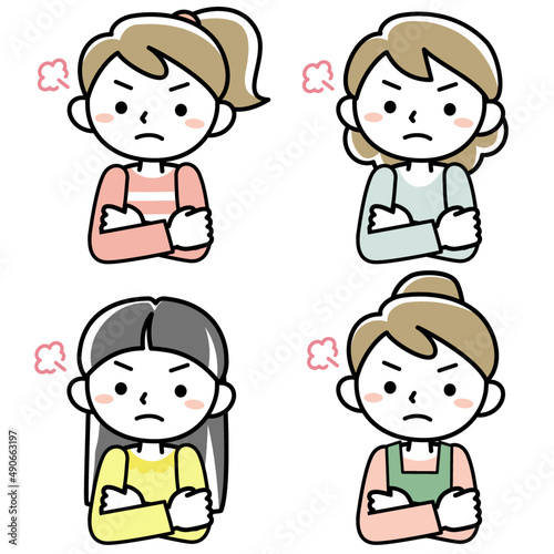 怒る若い女性の上半身セット