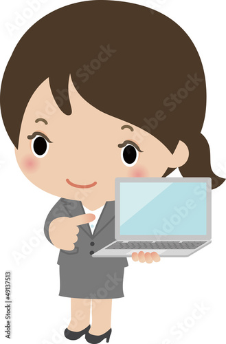 ノートパソコンを持ったスーツの女性