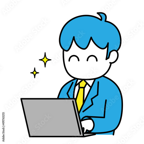 男性 会社員 ビジネス パソコン 笑顔 成功 イラスト