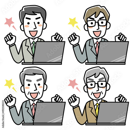 パソコンの前でガッツポーズをするビジネスマン