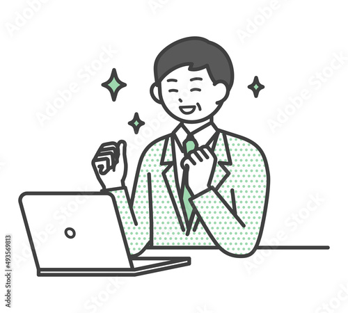 男性社員がパソコンを操作するイラスト素材
