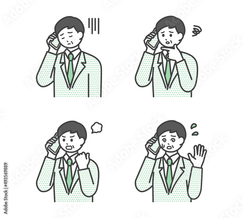 ビジネスパーソンがスマートフォンで連絡するイラスト素材