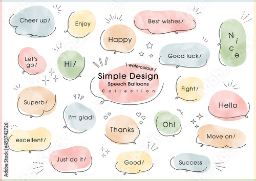 手書き 手描き シンプルな吹き出しセット(水彩)
