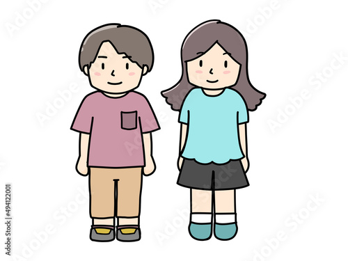 半袖の洋服を着た男女のイラスト