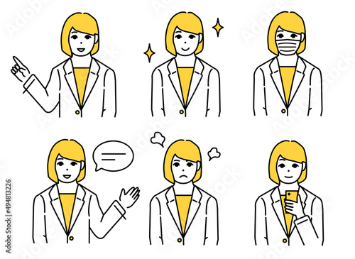 ショートヘア・ボブカットの女性会社員アイコンセットイラスト
