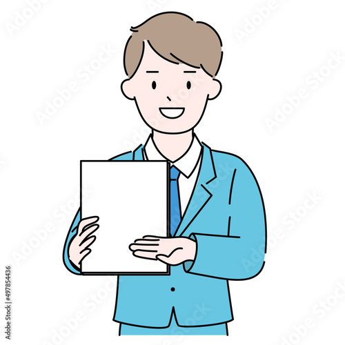 書類を持って説明する若い男性コンサルタント 頼れる プロ イラスト素材