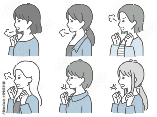 怒る若い女性の横向き上半身セット(私服)