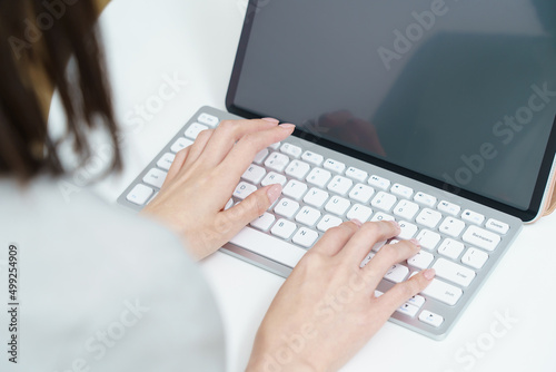 パソコンのキーボードを打つ女性の手元