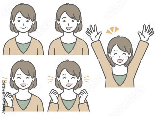 喜ぶ表情の強弱 中年女性