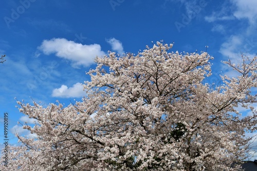 春空に爽やかに咲く桜の花 穏やかな陽ざし 風景