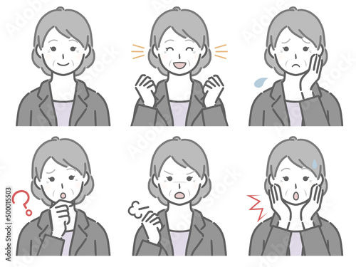 スーツを着た高齢女性の色々な表情