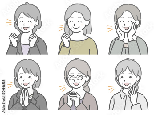 喜ぶ高齢女性の斜め向き上半身セット