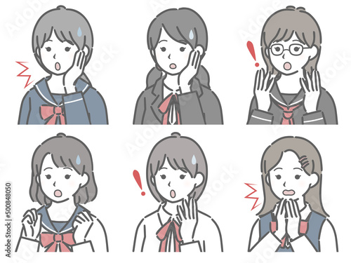 驚く女子学生の上半身セット