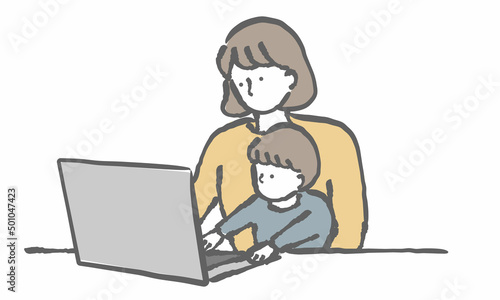 在宅ワーク 子育て 仕事 パソコン イラスト 女性
