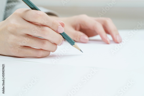 鉛筆を持つ女性の手