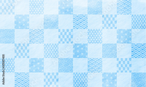 夏・水彩風・和柄・市松模様・祝・青・背景・伝統・模様・お中元・父の日