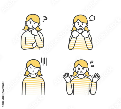 女の子のネガティブな表情のイラスト素材