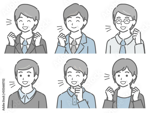 喜ぶ中年男性の斜め向き上半身セット