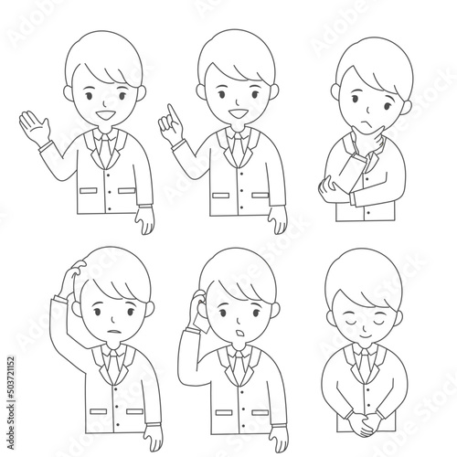 男性ビジネスマンの上半身の線画のイラストセット