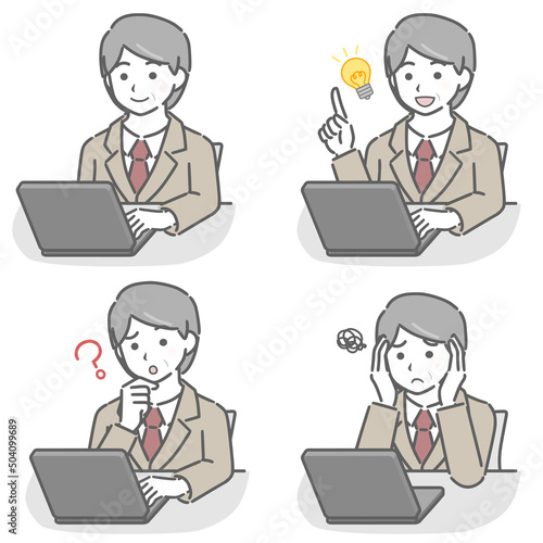 パソコンを操作するスーツの中年男性