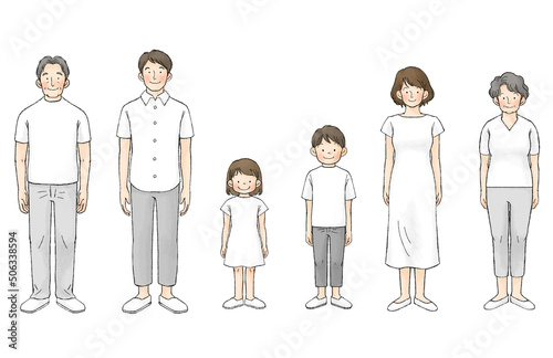 白い夏服の家族(三世代)