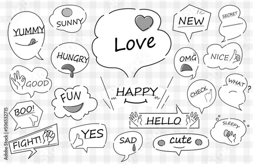 ポップな吹き出しセット モノクロ