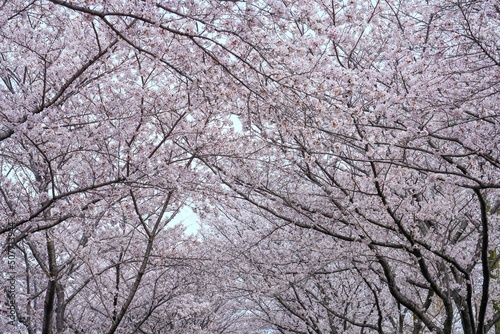 満開の桜並木のトンネル情景