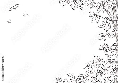 風にそよぐ樹木のフレームモノクロ