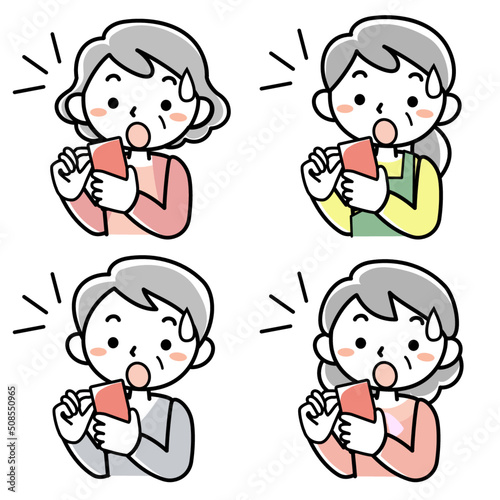 スマホを見て驚くシニア女性