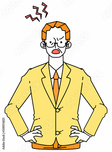 苛々と怒るスーツ姿の壮年の男性のイラスト