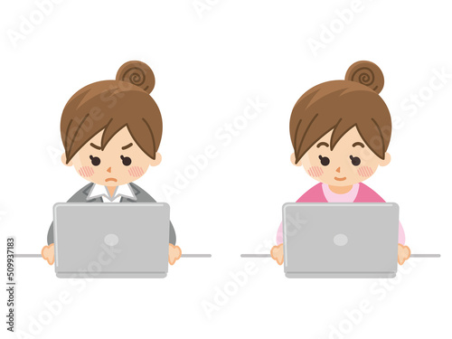 パソコンを使う女性 仕事とプライベート